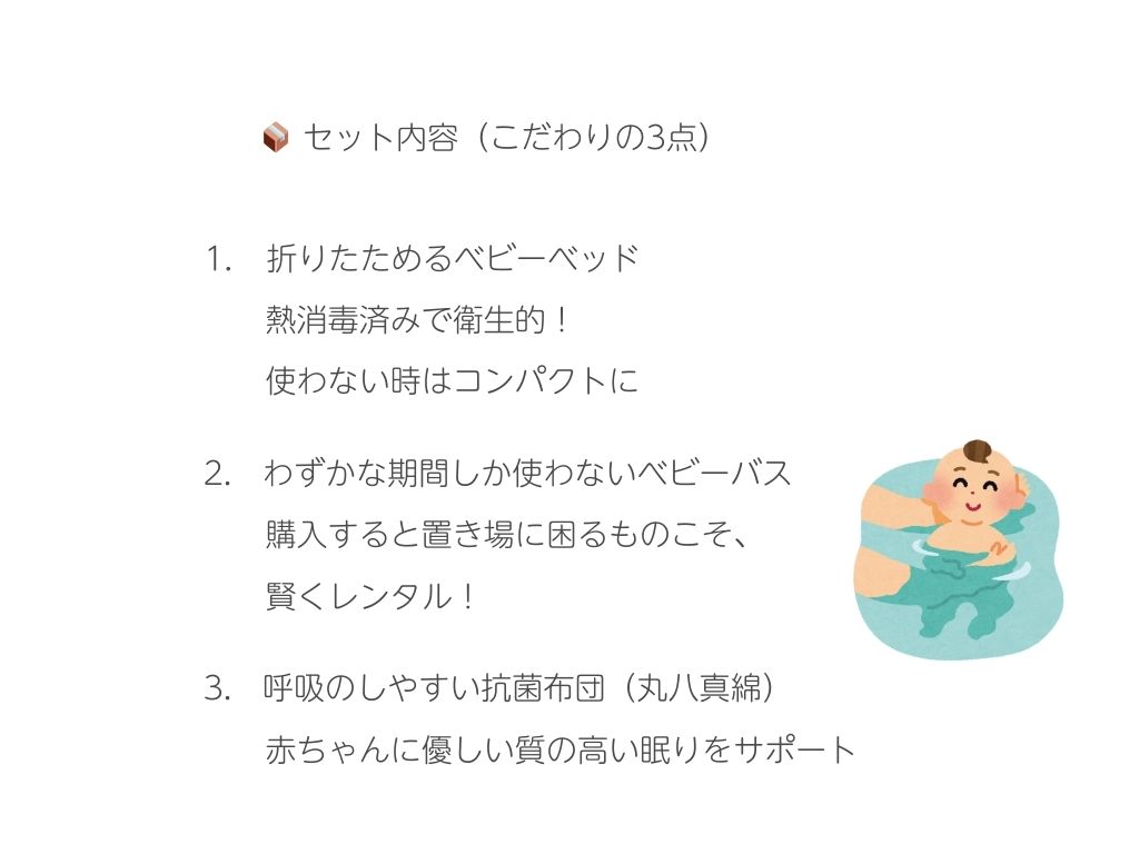 2 172026 出産準備は秋桜の「すぐいく出産」 お知らせ 「ベビーベッド、買うか迷う…」 「ベビーバス、数ヶ月しか使わないのにもったいない…」 そんなお悩み、ありませんか? ただいま秋桜では、人気の「出産3点セット」が、またまた特別価格でリースできちゃいます✨ 「必要な期間だけ、賢く、清潔に」 これからの出産準備を、もっと身軽にしませんか? 秋桜の「すぐいく出産」 数量限定・期間限定ですので気になる方はお早めに! お気軽にお問合せください! 責任者の仕事は、事故を起こさないこと! 前の記事